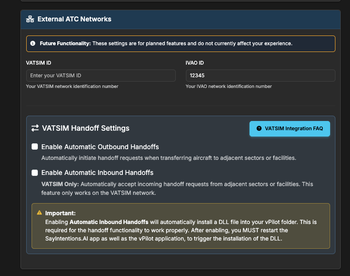 Disclaimer: SayIntentions.AI accepts no liability for any violations of VATSIM rules and regulations.