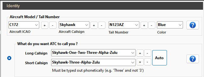 (NOTE: Clicking on Auto here will automatically fill in the Long and Short Callsign fields phonetically based on the