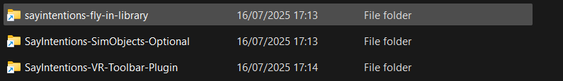 SayIntentions includes a system that should automatically install these files and create a Symbolic Link to your simulator(s) Community Folders, however sometimes an over-excited antivirus or firewall can prevent normal operation of this process.