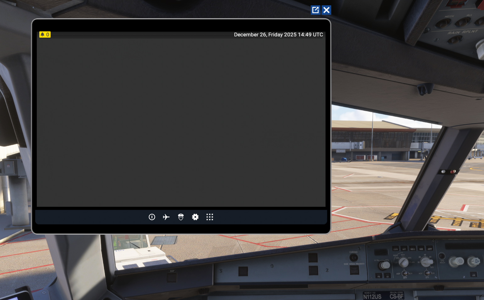Sometimes, if the EFB app is loaded before the SayIntentions.AI Desktop Client is started and connected, or if the desktop app is closed and reopened during a flight, the EFB can end up in a “blank” state, as shown above.