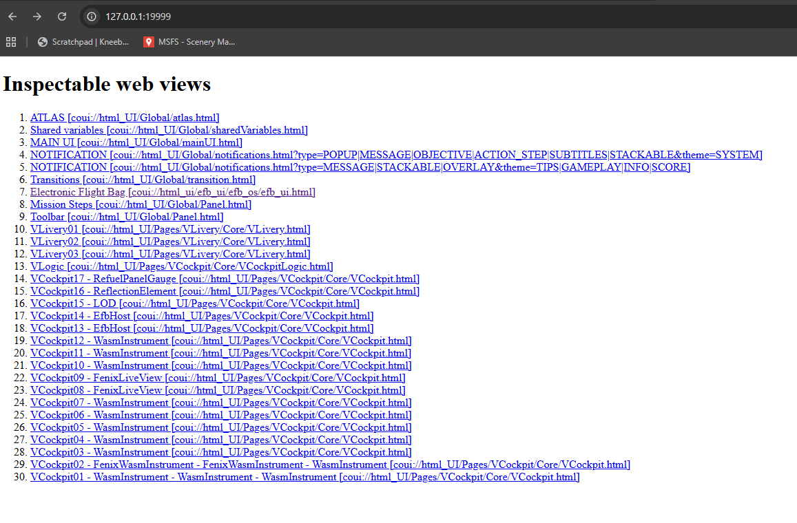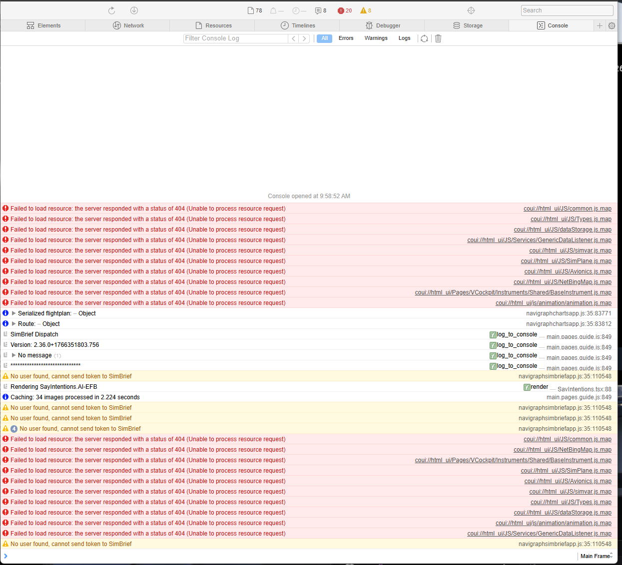 In situations where you need to restart the SayIntentions.AI Desktop Client during a flight and the MSFS 2024 EFB ends up in a blank state, you can force the EFB to reload using the MSFS Debugger tool by following the steps below. This approach should only be used when restarting your MSFS 2024 flight is not an option.