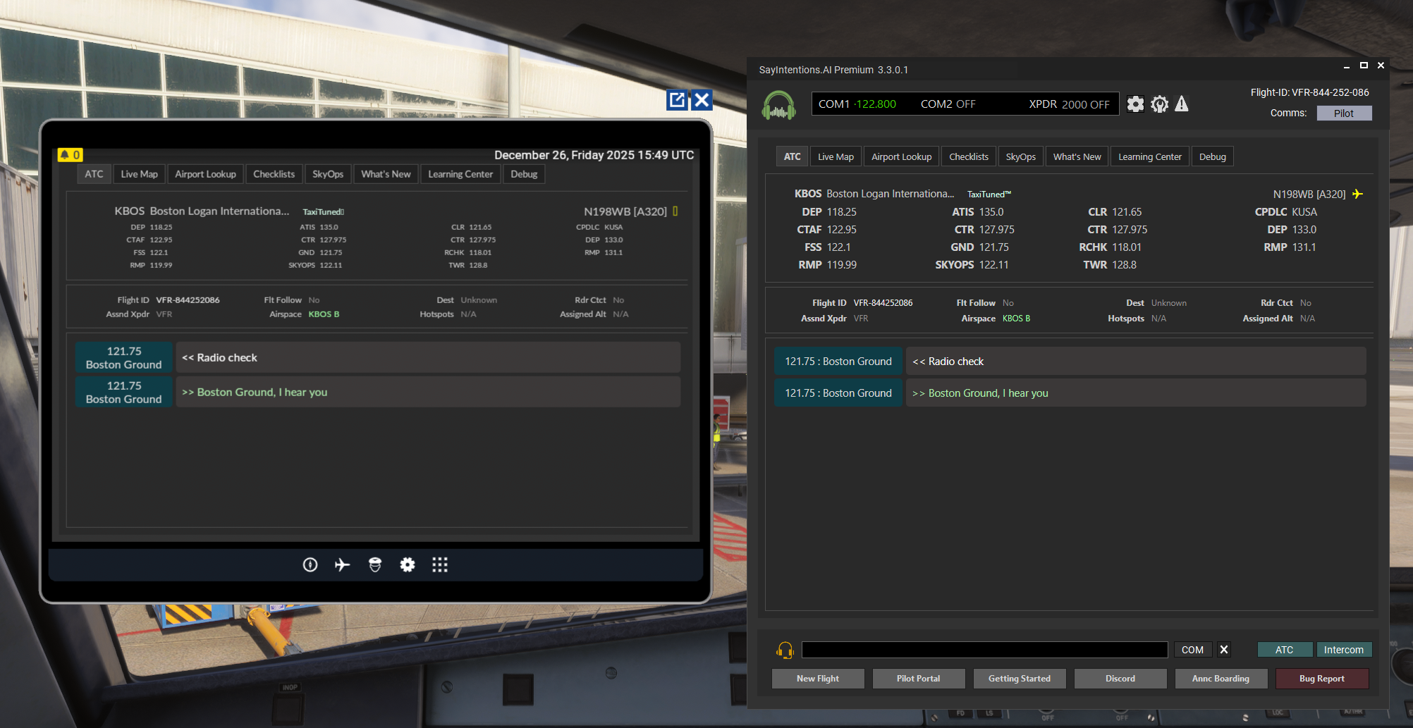 Fortunately, for https://comlink.sayintentions.ai/, you can simply refresh your browser to resolve the issue. However, the MSFS 2024 EFB does not provide an easy way to force a refresh. To correct this, you must either exit the flight or restart the flight entirely. Simply closing and reopening the EFB, pausing the simulator, or similar actions will not resolve the issue.